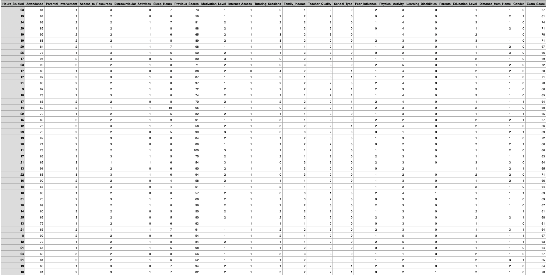This neural network predicts a students exam score, based on features such as their sleep hours, previous exam scores, peer influence, and more.